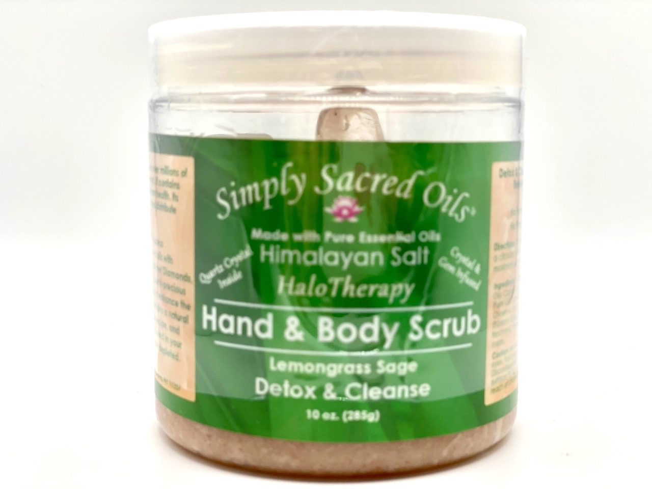 Detox & Cleansing Lemongrass & Sage Pure Essential Oils with Beeswax, Jojoba Oil, Rice Bran Oil & Fractionated Coconut Oil and other natural ingredients. Genuine Quartz Crystal Inside.