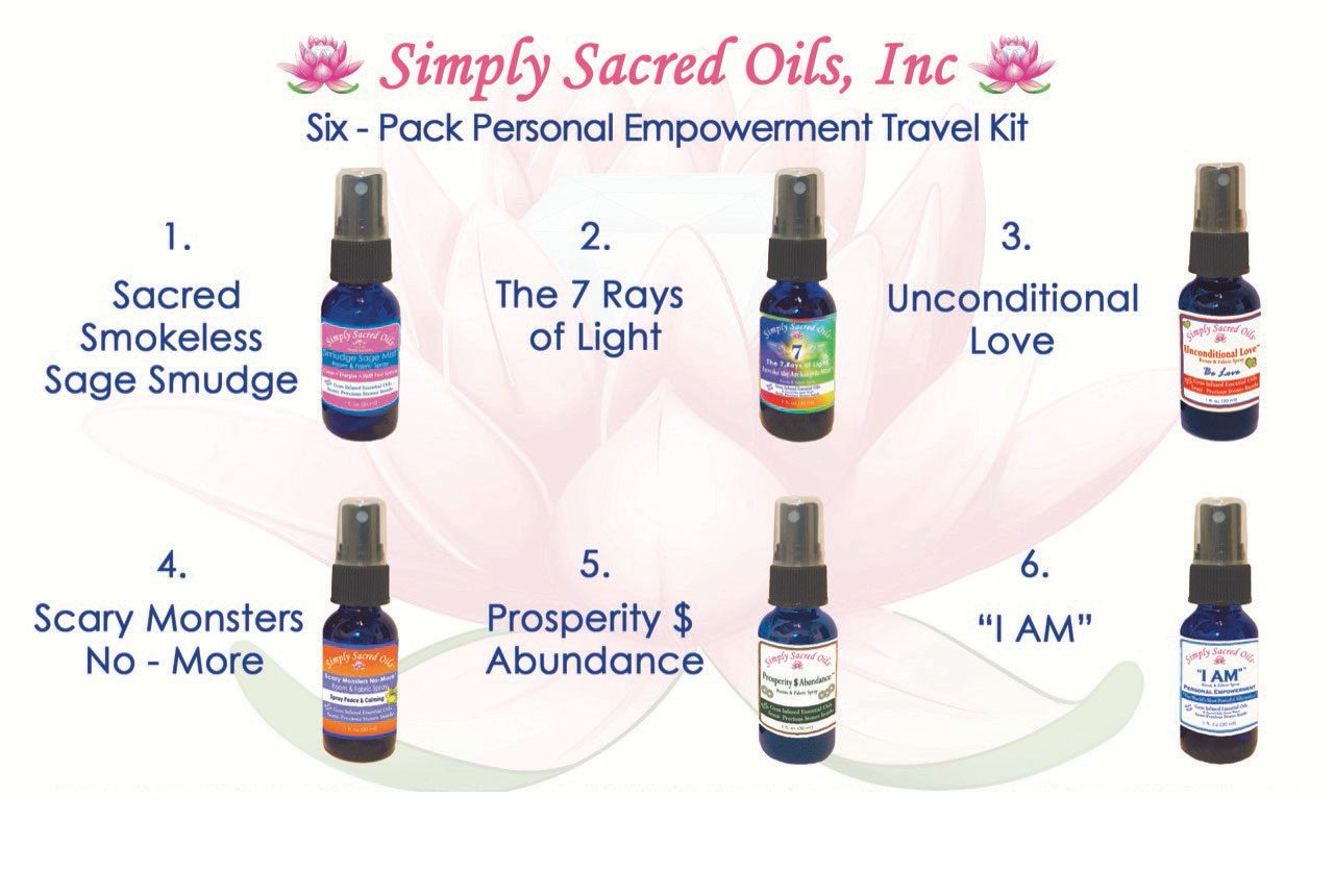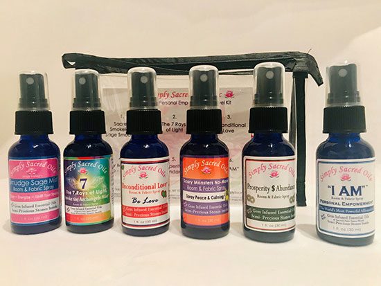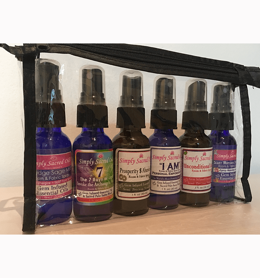 A series of six 1-ounce sprays in a travel case with a manifestation card.