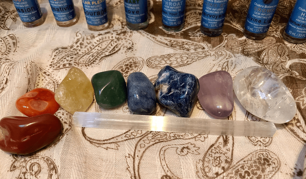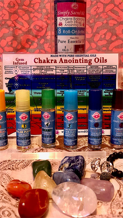 1 – Simply Sacred Oils™complete kit of 8 roll-on chakra balancing, gem infused anointing oils